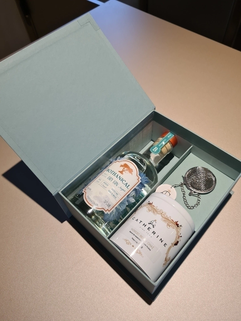 Composto por 1 garrafa de Bothanical Gin 375ml + 1 lata Nordic Berry Chai 50g + 1 Infusor com pingente acrílico.